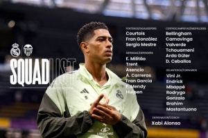 下一篇: 记者透露皇马vs瓦伦西亚大名单:姆巴佩领衔!维尼修斯、贝林在列
