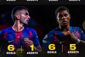 巴萨进攻端球员本赛季数据:拉什福德6球5助、亚马尔4球5助