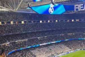 皇马DJ赛前播报首发球员,伯纳乌球迷给予维尼修斯热烈欢呼