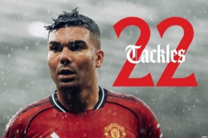 卡塞米罗本赛季英超完成抢断22次,曼联队内最多