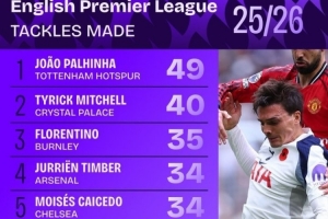 下一篇: 本赛季英超成功过人榜:多库、库杜斯并列居首,内托、萨卡在列
