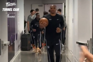 带头大哥!国王主场迎战掘金 威少带领队友们跑步进场