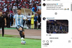 体育资讯11月15日讯 在友谊赛2-0战胜安哥拉后,阿根廷前锋劳塔罗在社交媒体上晒图,庆祝球队获胜。