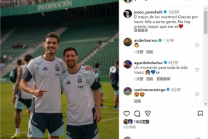帕尼切利社媒晒出与梅西的合照,配文:“我们之中最棒的!感谢你给无数人带来快乐,(对我来说)再也没有比这更好的奖赏了!”