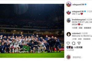 大赛梦圆⚽厄德高社媒晒挪威队大合照:世界杯!