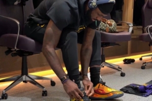 很炫!詹姆斯赛前备战 哼着小曲上脚最新一代签名鞋“詹23”