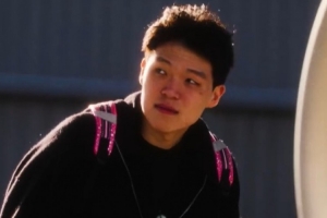 随队出发湾区!刘海被风吹开的杨瀚森 棱角分明的脸有种复古的帅