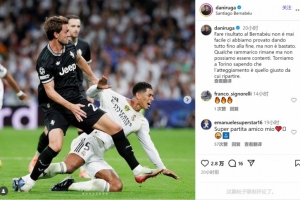 鲁加尼此役为尤文踢满全场,他在社交媒体上晒出比赛照片,配文:“在伯纳乌球场取得好结果从来都不容易,我们拼尽全力战斗到最后一刻,但还是不够。”