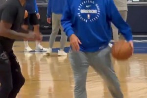 两个历史级控卫!基德在训练中推土机背打欧文,满满的都是欢乐!