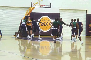 跟腱断裂后的科比,在湖人队内训练依旧嘎嘎猛干!