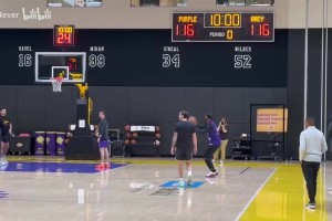 命中率还行?詹姆斯从湖人发展联盟回归主队训练!猛练定点三分!